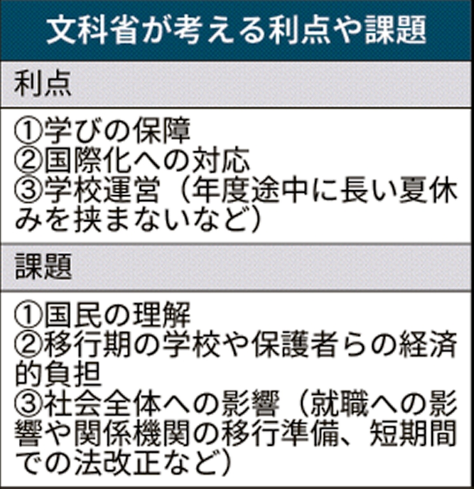 新型コロナ 小学校の9月入学 2案提示 文科省 移行1年か5年 日本経済新聞