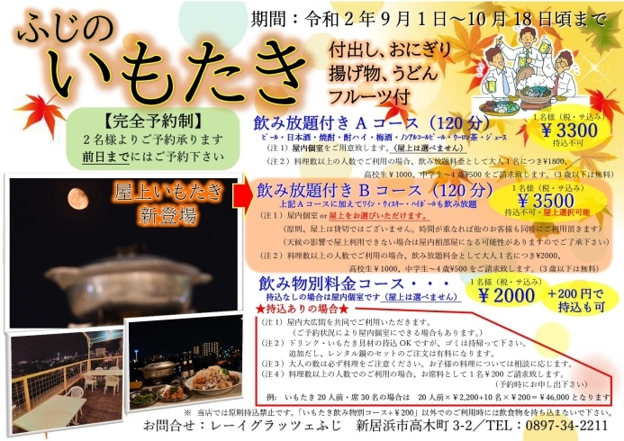 9月からの新コース 屋上で いもたき が楽しめます 先行予約受付中 Lei Grazie Fuji レーイグラッツェ ふじ の