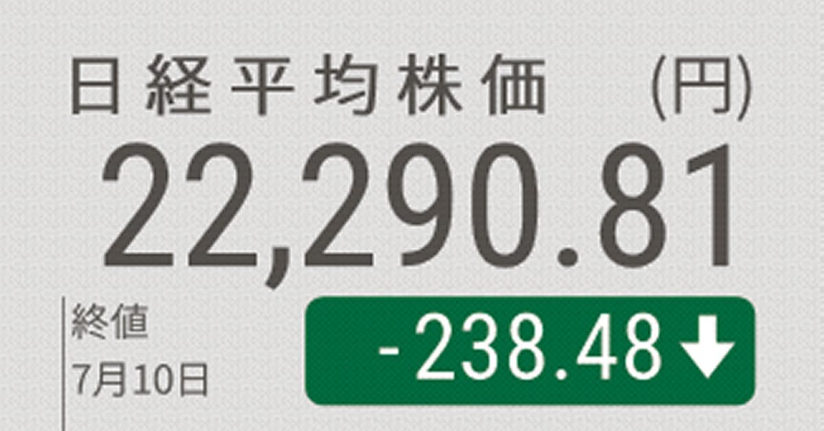 日経平均終値は238円安 感染拡大警戒 全体の9割下落 日本経済新聞