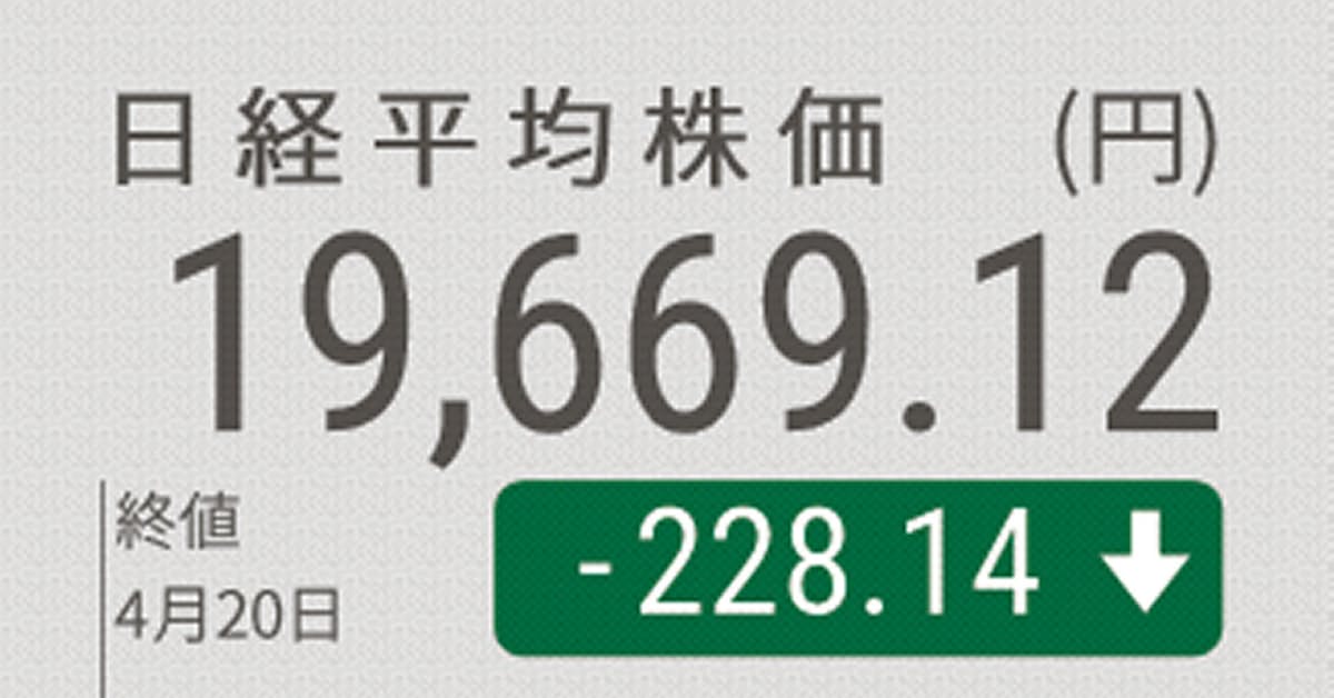 日経平均反落 228円安 利益確定売りが優勢 日本経済新聞